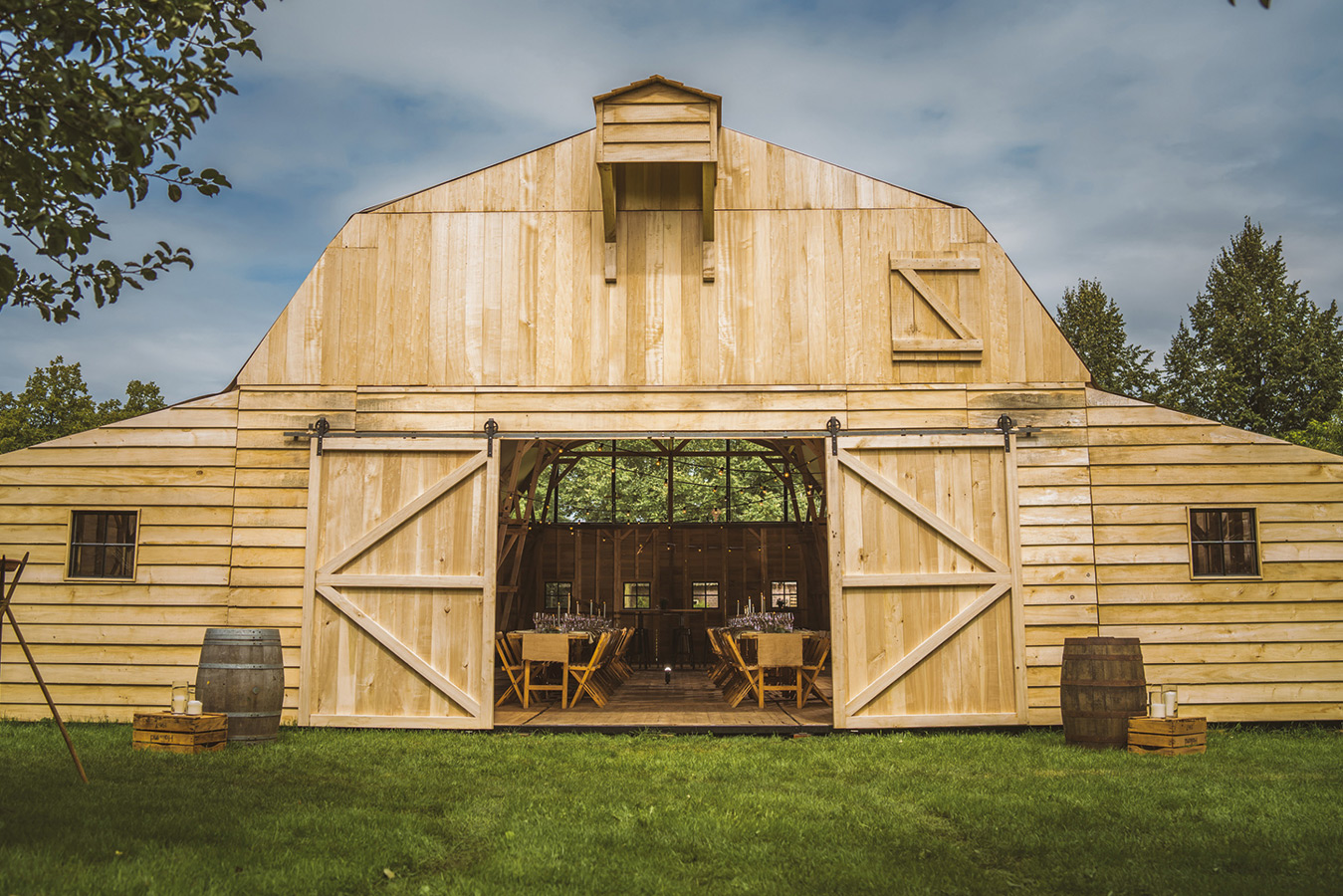 Een mobiele, externe evenementen locatie met de uitstraling van een Amerikaanse barn: warm, robuust en stijlvol. Een exclusieve pop-up locatie die direct sfeer en karakter toevoegt aan elk event en op vrijwel iedere locatie geplaatst kan worden. Vervaardigd uit hoogwaardig FSC-hout en metaal, met grote raampartijen die zorgen voor een prettige, natuurlijke lichtinval.