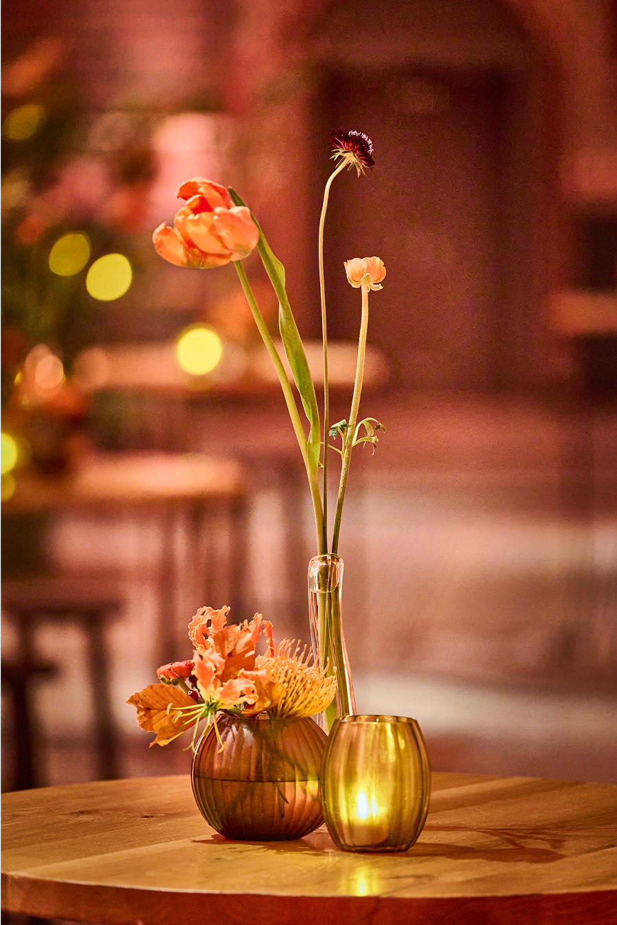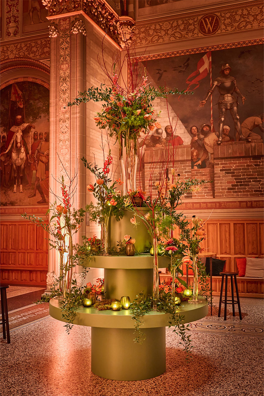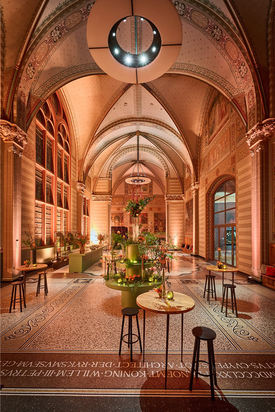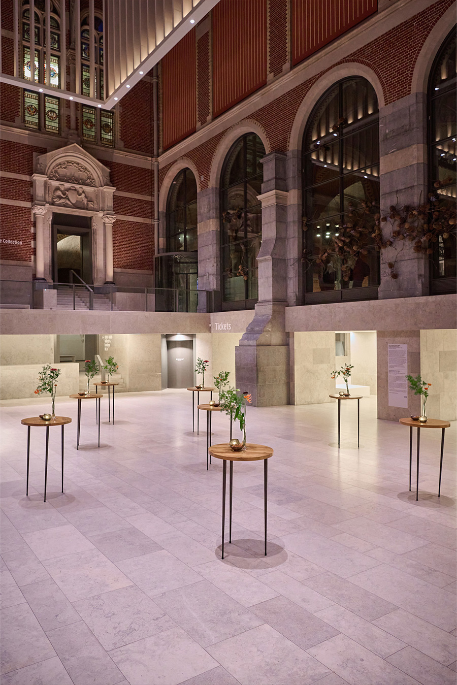 In the imposing front hall of the Rijksmuseum in Amsterdam, we realised the decoration of an exclusive summit. During this stylish walking dinner, we created a memorable and welcoming setting with colourful decoration in a colour palette of modern and earthy tones. Elegant lush floral arrangements and natural materials enhanced the characteristic elements in the space en ensured a harmonious overall experience