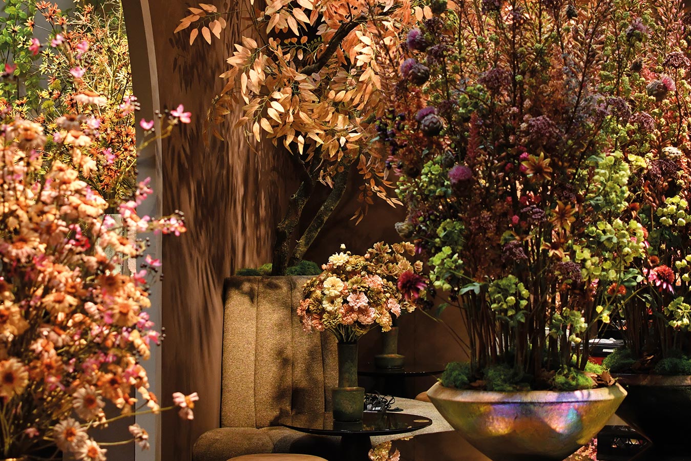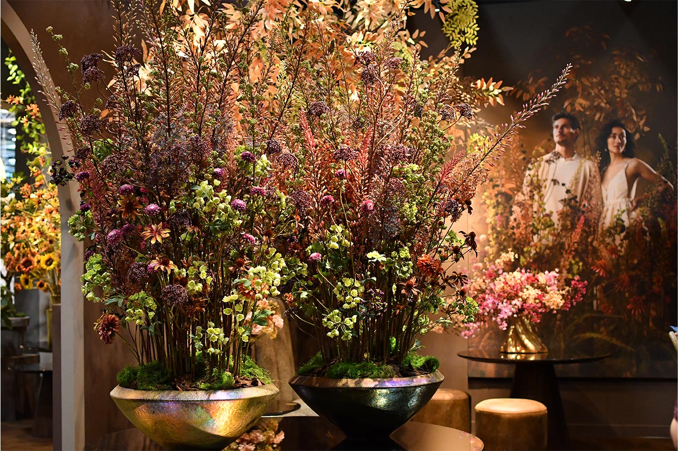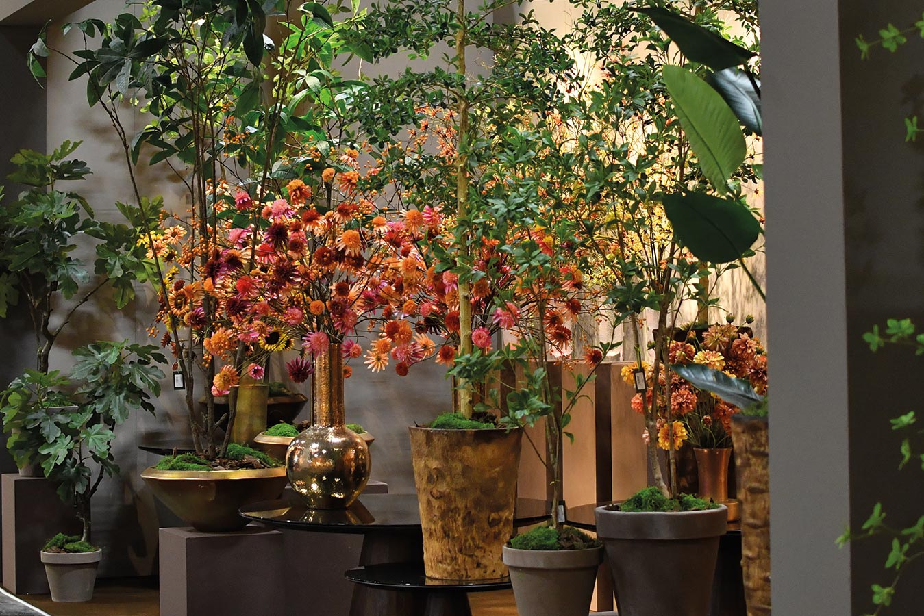 Om de materialen van Silk-ka optimaal te presenteren en context te geven, hebben we verschillende composities gemaakt. Zo stelden onze bloemisten kleurrijke en weelderige bloemstukken samen waarin tijdloze elegantie gecombineerd werd met moderne bloemenkunst. Ook vervaardigden we verschillende zijden bomen, waaronder de grote boom bij de entree van de stand, die als eyecatcher gelijk de aandacht van de bezoekers trok. Het geheel werd een betoverende en inspirerende beleving waar natuur en interieur samensmolten.