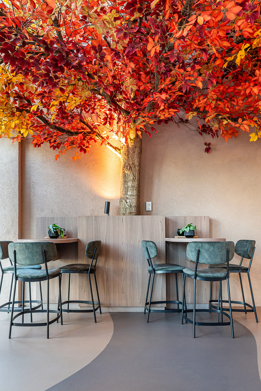 Als onderdeel van een verfijnd restaurantinterieur verzorgden wij een zijden boom in warme herfstkleuren. Een authentieke boomstam vormt de basis, aangekleed met hoogwaardige, realistische zijden takken in rijke herfsttinten. Het geheel vormt een natuurlijk ogend statement in de ruimte en voegt warmte, beleving en elegante, blijvende schoonheid toe.